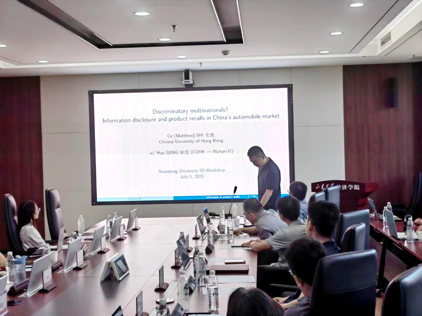 香港中文大学经济系助理教授、浙江大学—香港中文大学数字经济联合研究中心副主任史册作题为“Discriminatory Multinationals? Information Disclosure and Product Recalls in China’s Automobile Market”的报告,研究聚焦跨国汽车公司对中国地区的缺陷产品召回情况,以及更多的信息披露能够加强消费者监督并增进消费者福利。