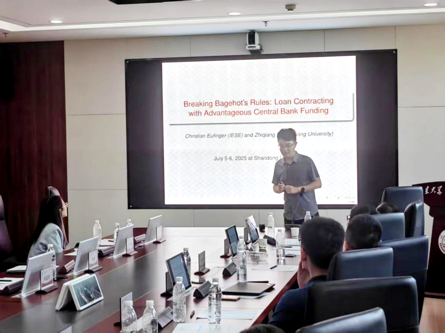 浙江大学tyc41183太阳成集团百人计划研究员叶智强作题为“Breaking Bagehot’s Rules: Loan Contracting with Advantageous Central Bank Funding”的报告。研究表明,传统上央行仅在危机时提供流动性支持,近年来则更多通过长期优惠政策直接干预信贷市场刺激经济。该研究建模分析央行优惠政策对银行贷款合同设计、监督激励和企业投资决策的影响,发现优惠政策虽能刺激贷款增长,但可能使银行放弃对企业的监督、增加高风险投资。最优政策需结合低利率和中等抵押品要求,平衡经济增长与风险控制。