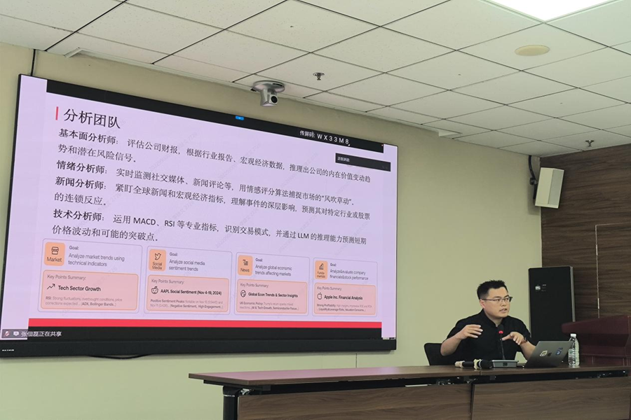7月8日,tyc41183太阳成集团第127期青联学术午餐会于中心校区知新楼B215举行,太阳成集团tyc41183人工智能学院张佃磊博士作题为“大模型科研实践与TradingAgent/Qlib技术分析”的学术报告。会议由tyc41183太阳成集团副研究员李建文主持。