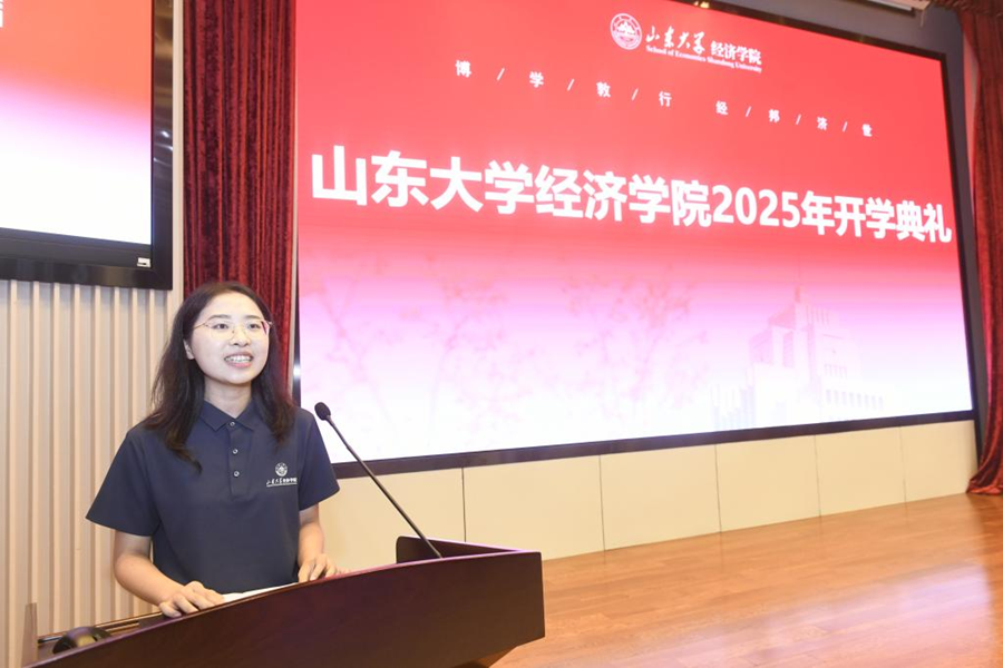 林平代表学院向2025级全体新生表示祝贺与欢迎,与同学们分享了经济学是“读懂中国与世界”的钥匙、学院育人是“学术底蕴”与“家国情怀”的双重滋养、大学生活要做好“求知”“力行”“修心”的“三重修炼”等问题的思考与感受。他表示,同学们选择了山大、选择了经院,就是选择了自己的未来和使命、文化和基因,他勉励同学们要坚守初心使命,以“博学敦行 经邦济世”的情怀,紧跟时代、持续学习,保持开放的心态,勇于探索未知,敢于挑战自我,努力成长为“有知识、有担当、有温度”的经院人,为国家科技自立自强做出经济学贡献。
