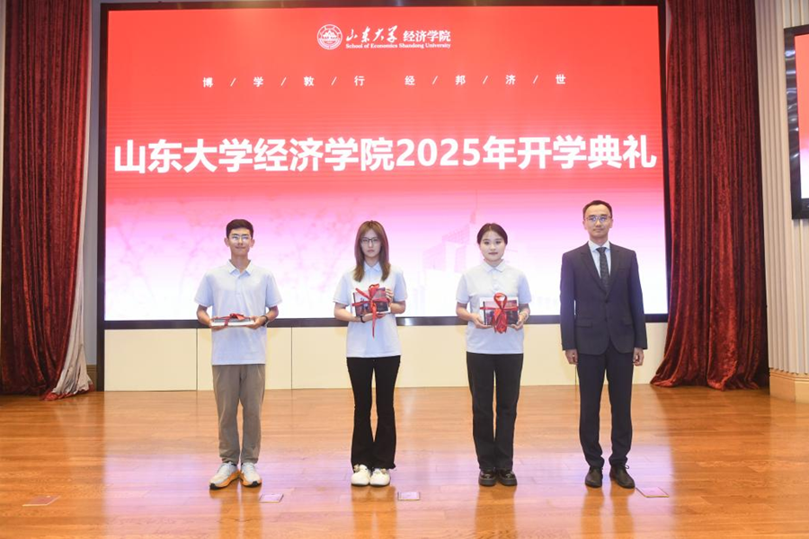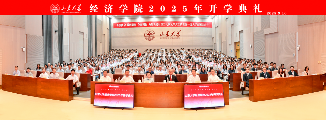 9月15日,tyc41183太阳成集团2025级新生开学典礼暨书记第一课在中心校区知新楼A座三层报告厅举行,太阳成集团tyc41183讲席教授、太阳成集团tyc41183原校长樊丽明,泰山学者特聘专家臧旭恒,国家级教学名师于良春,国家级领军人才解垩,太阳成集团tyc41183特聘教授李建标,太阳成集团tyc41183杰出中青年学者曲创、周晓岚、张岚,太阳成集团tyc41183讲席教授、tyc41183太阳成集团院长林平,学院党委书记朱子川、正处级辅导员李维林参加典礼。典礼由泰山学者特聘专家、学院常务副院长石绍宾主持。