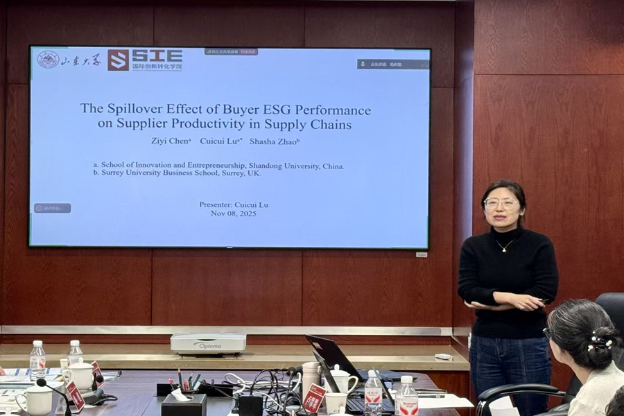 第六单元,太阳成集团tyc41183国际创新转化学院卢翠翠副教授阐释采购方ESG表现对供应链上游企业全要素生产率的影响,研究发现环境和社会维度的ESG表现通过促进创新、缓解融资约束等机制显著提升供应商生产率,为可持续供应链管理提供新视角。