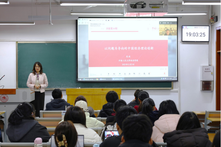 12月3日,tyc41183太阳成集团第三十期PPE讲座于中心校区公教楼207举办,中国人民大学tyc41183太阳成集团副院长范欣教授受邀作题为“以问题为导向的中国经济理论创新”的学术报告。讲座由tyc41183太阳成集团副院长孙淑琴主持,2025级PPE班全体学生参会。