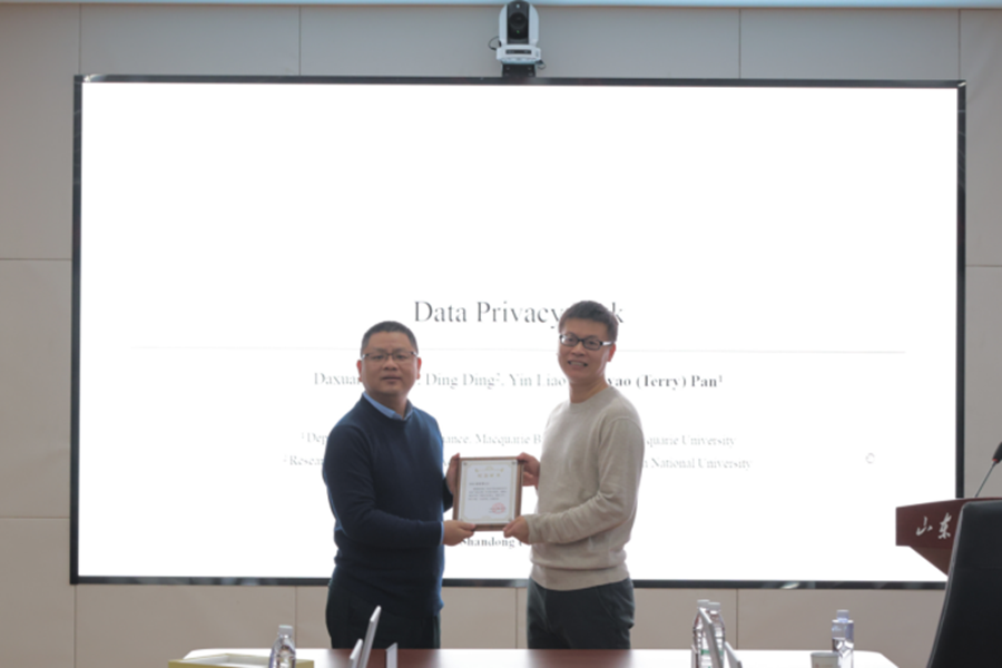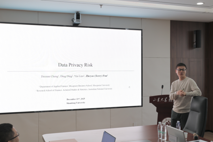 12月23日,tyc41183太阳成集团第361期高级经济学讲座于中心校区知新楼B321举办,麦考瑞大学应用金融系教授潘哲耀受邀作题为“Data Privacy Risk”的学术报告。讲座由tyc41183太阳成集团教授钱先航主持,学院部分师生参会。
