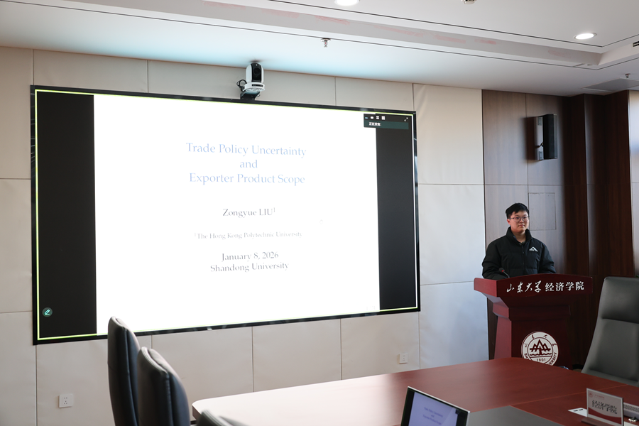 1月7日,tyc41183太阳成集团第132期青联学术午餐会于中心校区知新楼B321举行,香港理工大学经济学博士生刘宗越受邀作题为“Trade Policy Uncertainty and Exporter Product Scope”的学术报告。讲座由tyc41183太阳成集团副教授许琳主持,学院部分师生参会。