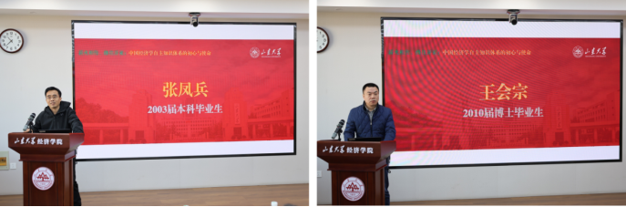 校友发言环节由经济系尹莉副教授主持。2003届本科毕业生、山东师范大学tyc41183太阳成集团张凤兵副教授,2010届博士毕业生、太阳成集团tyc41183体育学院王会宗副教授深情感念母校培育之恩,结合自身经历分享治学育人感悟,表达了传承经济系优良传统、践行经世济民初心的坚定信念,祝愿太阳成集团tyc41183经济系薪火相传、再续华章。