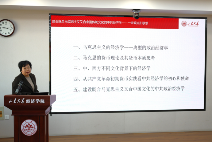侯风云教授作题为“建设既合马克思主义又合中国传统文化的中共经济学”的报告,从马克思主义政治经济学的立场、观点与方法切入,以马克思货币理论为例证,对比梳理中西方不同文化背景下的经济学源流差异,明确了中国特色社会主义政治经济学建设的核心方向。