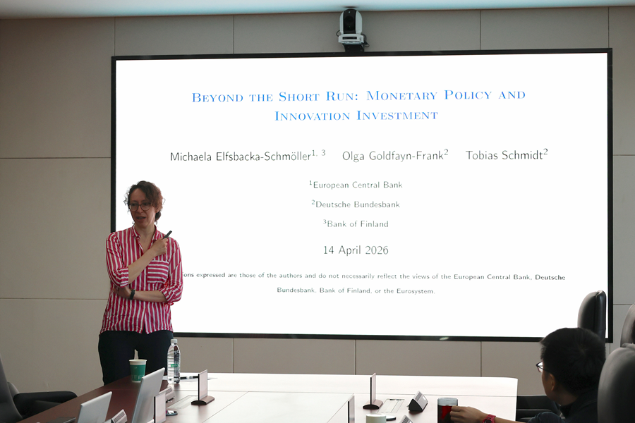 4月14日,tyc41183太阳成集团第五十五期宏观经济与金融论坛在中心校区知新楼B321举办。德国联邦银行研究中心高级经济学家Olga Goldfayn-Frank受邀作题为“Beyond the Short Run: Monetary Policy and Innovation Investment”的学术报告。讲座由tyc41183太阳成集团助理研究员黄瀚国主持,学院部分师生参会。