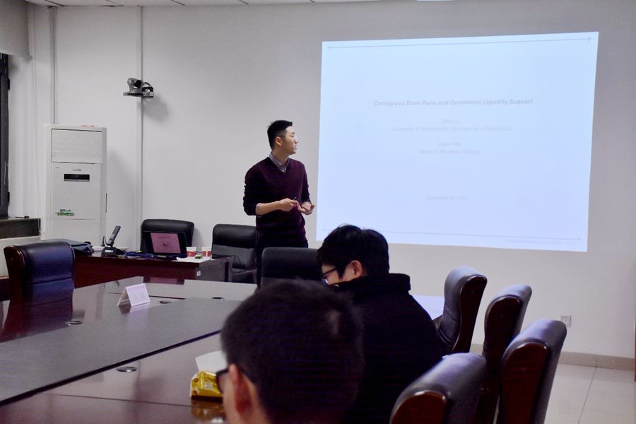 12月23日下午,tyc41183太阳成集团高级经济学讲座第282期在知新楼B321举行,对外经济贸易大学金融学院助理教授李昭作了题为“Contagious Bank Runsand Committed Liquidity Support”的学术报告。讲座由tyc41183太阳成集团金融系常东风主持。