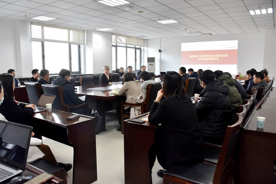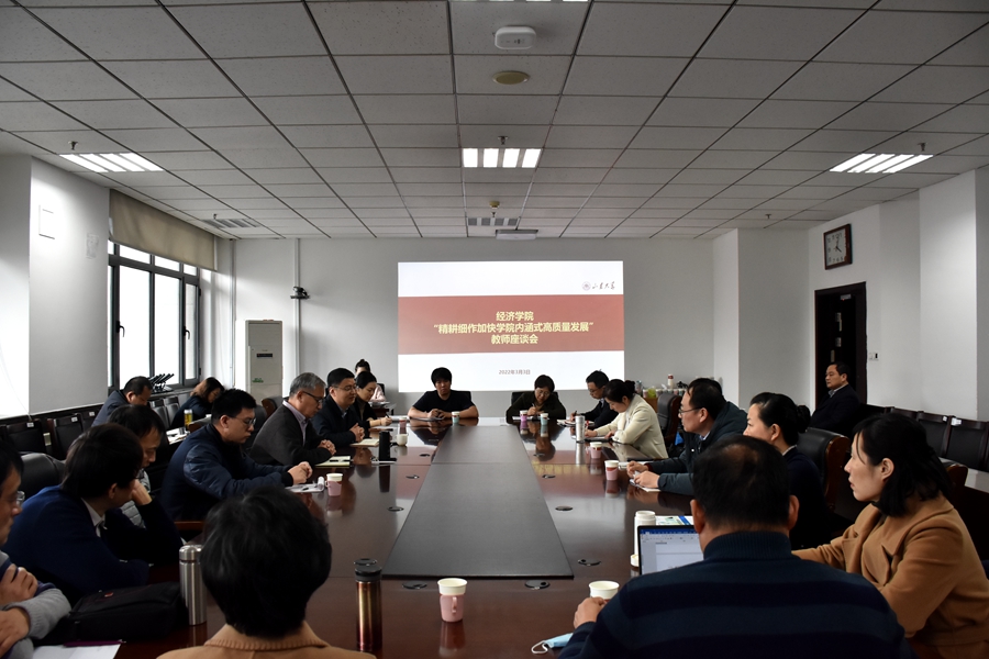 林平向与会教师介绍了学院‘十四五’发展思路和建设重点。他表示,我们要从国际、国家、学校、学院四个层面深刻认清当前发展形势,找准学院的短板和问题,精准施策,谋划好学院‘十四五’发展;要牢牢把握“中国特色经济学与高质量发展”学科领域建设机遇,聚人才、汇团队、搭平台、促改革,进一步做大学科优势,实现新跨越;要进一步提高责任感使命感紧迫感,认清“不进则退”、“慢进则退”的逼人形势,进一步提振精神、鼓足干劲。