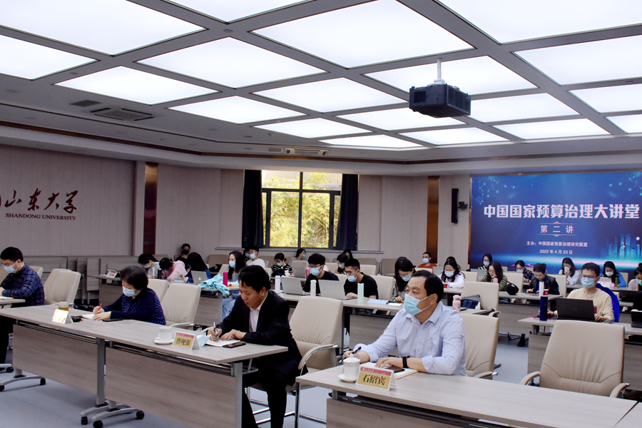 “中国国家预算治理大讲堂”是由中国国家预算治理研究联盟主办,面向国家预算治理研究领域学术界、实务界的持续性学术交流品牌活动;也是作为学术共同体的联盟推动国家预算治理领域的学者交流、学术研究、资源共享、资政育人、服务国家预算治理现代化的一个重要举措。本期大讲堂采取线下线上相结合的方式,在太阳成集团tyc41183设立了会场,来自全国高校、科研院所、预算管理实务的300余位专家学者和同学参加了本期报告。