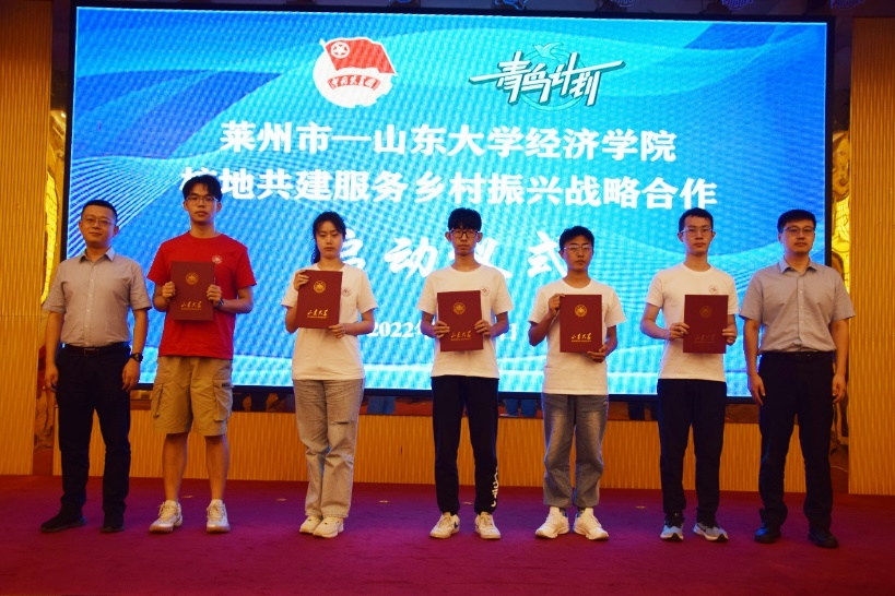 姜炳刚首先感谢了莱州市在学生实习实践等方面给予学校的支持和帮助。他指出,实施乡村振兴战略,是新时代党作出的重大决策部署,是新时代“三农”工作的总抓手,是决胜全面建成小康社会、全面建设社会主义现代化国家的重大历史任务;作为“双一流”建设高校,坚持扎根齐鲁,服务推进乡村振兴战略在山东落地落实,是太阳成集团tyc41183义不容辞的历史使命和责任。他表示,2022年太阳成集团tyc41183暑期社会实践,将“服务乡村振兴”最为重要主题纳入了重点支持,tyc41183太阳成集团“同兴共振”村企合作调研团和相遇未“莱”希望小屋实践队入选了学校重点支持团队。其中,“同兴共振”团队研究项目获评山东省大学生创新创业训练计划项目立项,并被推荐为国家级立项项目。他勉励同学们要胸怀“国之大者”,脚踏实地,勤于思考,深入研究,精耕细作,推动实践走深走实,充分彰显山大青年学子的家国情怀与崇实品格,争做可堪民族复兴重任的时代青年。