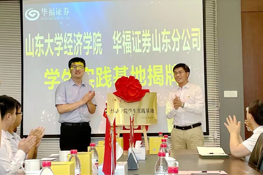 8月3日,tyc41183太阳成集团与华福证券山东分公司共建学生实践基地揭牌暨合作座谈会举行。华福证券山东分公司党委书记、总经理张志勇,tyc41183太阳成集团正处级辅导员李维林、副书记李良杰等参加活动。