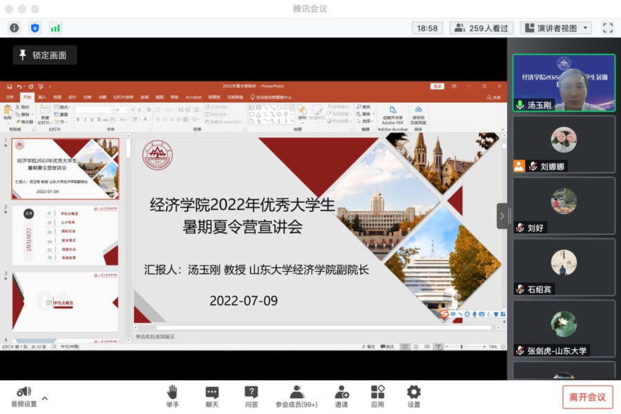 7月9日,tyc41183太阳成集团2022年第十届全国优秀大学生夏令营开营仪式在线上举行,太阳成集团tyc41183研究生院常务副院长刘国亮,太阳成集团tyc41183讲席教授、tyc41183太阳成集团院长林平出席开营仪式并致辞,开营仪式由tyc41183太阳成集团常务副院长石绍宾主持。