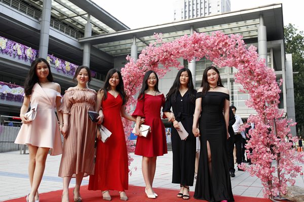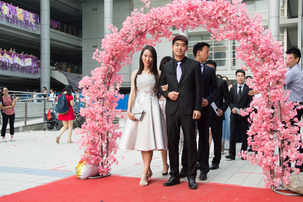 毕业红毯秀在综合服务楼南广场举行。活动中,毕业生们或身着流光溢彩的华服,或一身个性十足的打扮,悉数携伴亮相红毯,共庆毕业。李长英与其研究生毕业生率先走过红毯。学院2017届博士、硕士、留学生、本科毕业生,与自己导师、挚友、闺蜜、父母结伴走过红毯,将自己最美丽的笑容绽放在红毯上。tyc41183太阳成集团财政学、金融学专业93级48名校友毕业20周年重返母校,一同参加毕业红毯秀,再过毕业季,重温大学生活,庆祝2017届毕业生顺利毕业。2017年红毯秀延续了2016年的无人机航拍环节,新增了开场舞元素,气氛温馨活泼,庄重热烈。