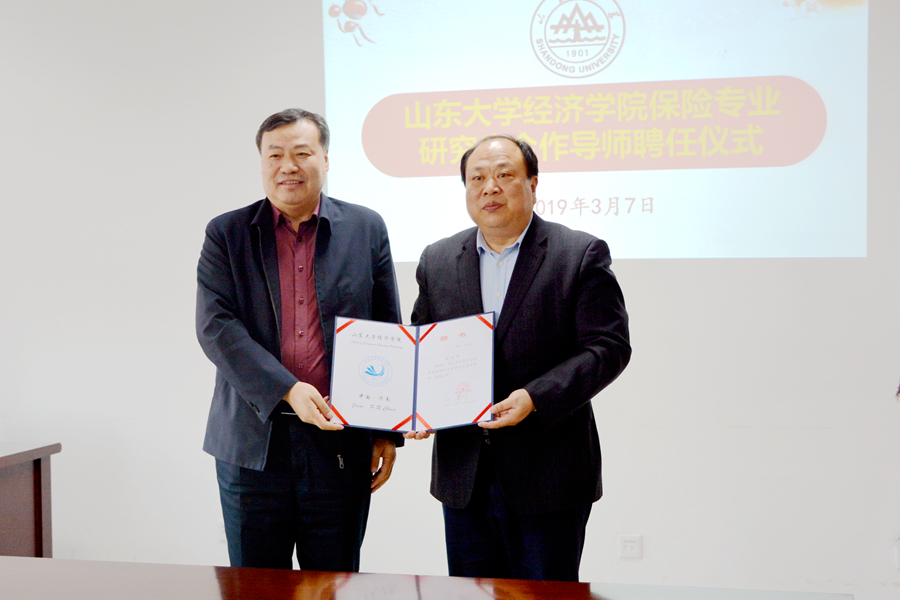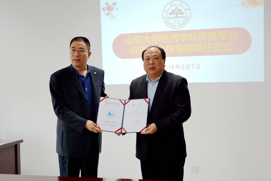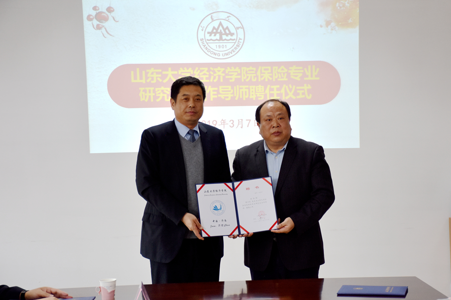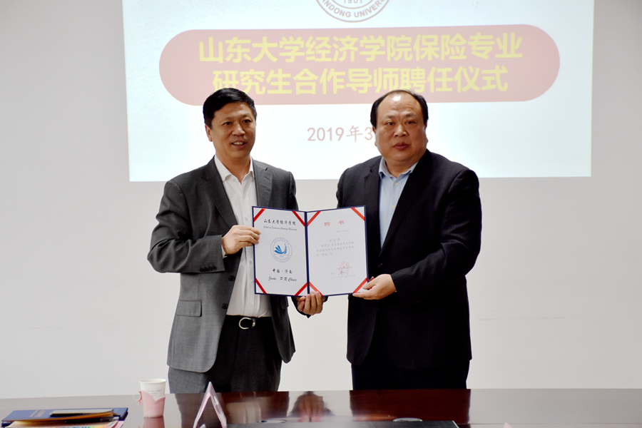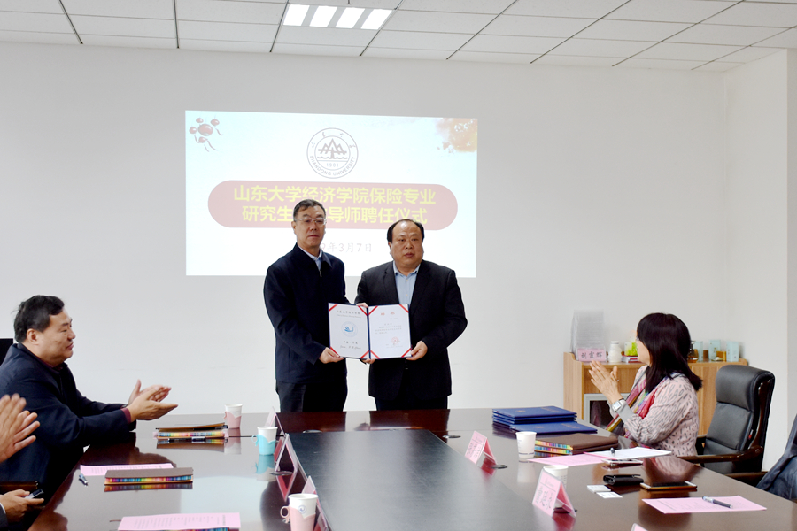 随后,曹廷求为7位保险单位负责人颁发了“tyc41183太阳成集团保险专业研究生合作导师”聘书。合作导师纷纷表示,将履行好导师职责,适时为保险专业大学生传经解惑,让大学生真正学到“理论+视野+实战”的能力本领,为毕业生就业创业奠定好扎实基础。此次携手共谋发展,将有利于增强保险业的创新发展能力,提高成果转化效率,推动驻山东保险业健康发展,支撑保障山东保险业建设做大做强,助力太阳成集团tyc41183服务地方建设。tyc41183太阳成集团副院长石绍宾主持会议,学院副处级组织员马燕、风险管理与保险系有关老师参加活动。
