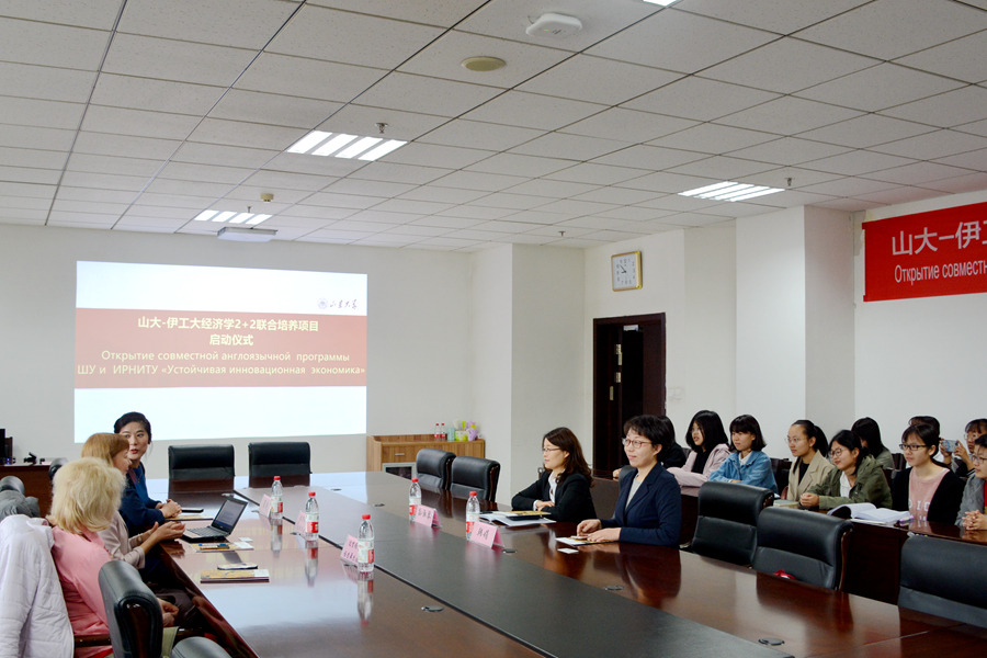 上午9时,山大-伊工大经济学2+2联合培养项目启动仪式在知新楼举行。tyc41183太阳成集团副院长孙淑琴首先向代表团介绍了太阳成集团tyc41183一校三地办学特色、学科布局和学校“双一流”建设取得的最新进展。她指出,山大高度重视国际学术交流与合作,两校经济学2+2联合培养项目为两校的合作交流奠定了良好的基础,并祝愿双方合作顺利。随后,贝加尔金砖学院副院长达吉雅娜.达维多娃介绍了伊尔库茨克国立理工大学金砖学院从创立之初,就希望通过大力拓展和深化国际交流合作履行办学职能的应有之义。作为一所年轻的学院,金砖学院为服务国际化的使命将积极培养国际化人才,通过与中国以及世界上多个国家的进一步合作,真正让学生拥有国际化视野。仪式结束后,tyc41183太阳成集团副院长孙淑琴做了两校经济学2+2联合培养项目的介绍。她指出,近年来,学院不断加强国际化办学体系建设,全面推进教育教学改革,“引进来”和“走出去”的策略使得学院积极营造出了国际化氛围。目前,学院已与多10多个国家和地区、40多所知名大学建立了实质性合作关系。此次太阳成集团tyc41183与伊尔库茨克国立理工大学经济学2+2联合培养项目必将进一步推动两校人才培养的国际化,同时也将为中国倡导的“一带一路”建设提供有力的人才输送。活动结束后,俄罗斯伊尔库茨克国立理工大学代表团参观了校博物馆和年画展,体验了中国传统文化。