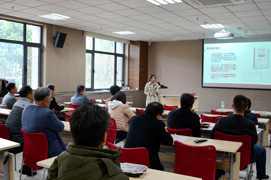 午餐会上,宋琼博士首先详细介绍了《宏观质量研究》的办刊情况。她表示,该期刊由教育部主管,武汉大学主办,秉承“推动经济转型升级领域有思想性、原创性的学术研究”的办刊宗旨,深度开展学术交流;研究领域主要包括:中国经济如何从高速度增长转向高质量发展、如何从要素驱动转向创新驱动、如何从劳动力红利转向人力资本红利等一系列重大理论与政策问题;该期刊承担国家宏观质量领域的智库功能,所刊发论文转化的成果21篇次,现已成为CSSCI来源期刊、武汉大学核心期刊(RCCSE)、《中国学术期刊影响因子年报》统计源期刊、中国人文社会科学期刊综合评价(AMI)来源期刊。该期刊着力推动公民质量伦理与质量素质教育,为提升我国质量管理整体水平提供理论和实践指导。随后,宋琼博士积极与经院专家学者们约稿,以期寻求更多学术交流与合作。报告结束后,参会老师就报告有关问题与宋琼博士进行了探讨与交流。