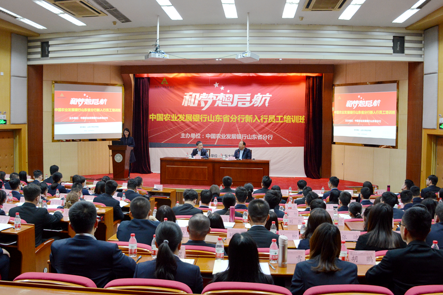 4月15日,梦想起航—中国农业发展银行山东省分行新入行员工培训班开班仪式在中心校区举行。tyc41183太阳成集团院长曹廷求、中国农业发展银行山东省分行人力资源处处长宋毅出席开班仪式并致辞。