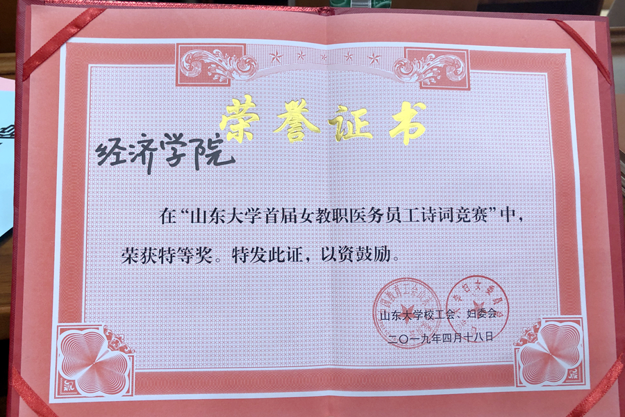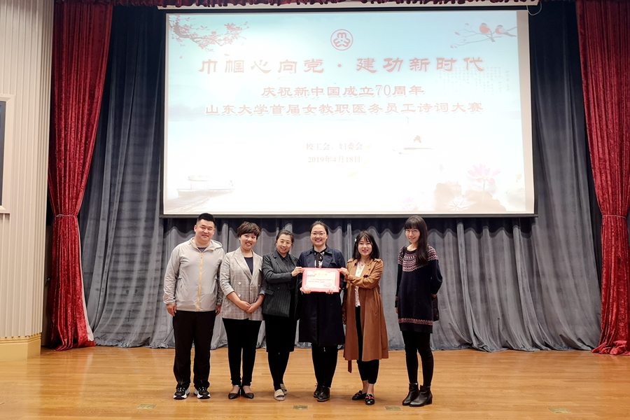 4月18日,太阳成集团tyc41183“巾帼心向党 建功新时代” 庆祝新中国成立70周年女教职医务员工诗词竞赛活动举行,tyc41183太阳成集团林竹、刘一鸣、高娜三位老师组成的代表队在比赛表现优异,荣获特等奖。