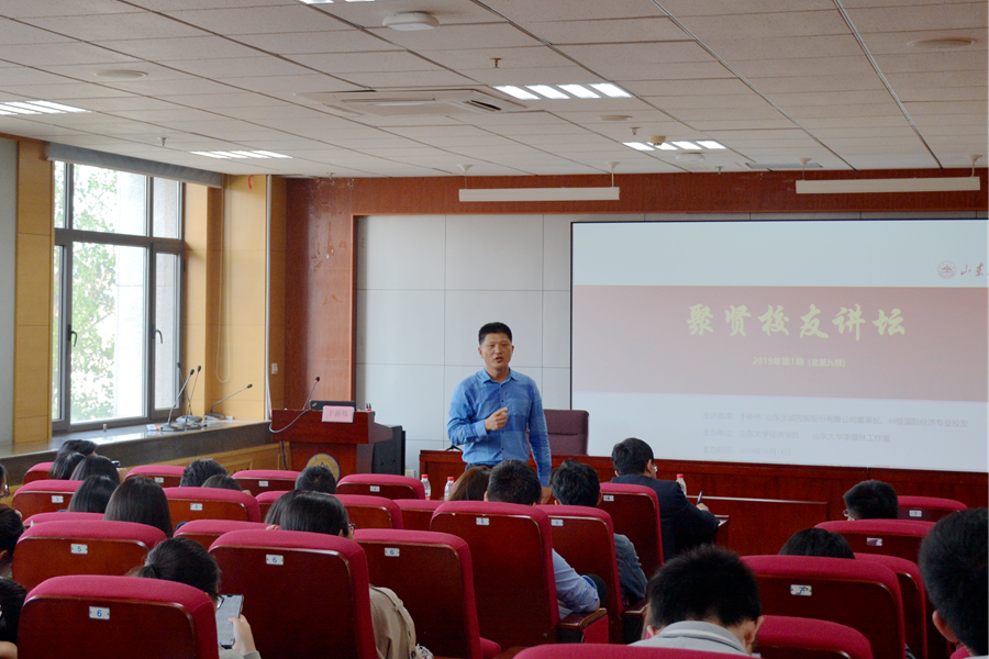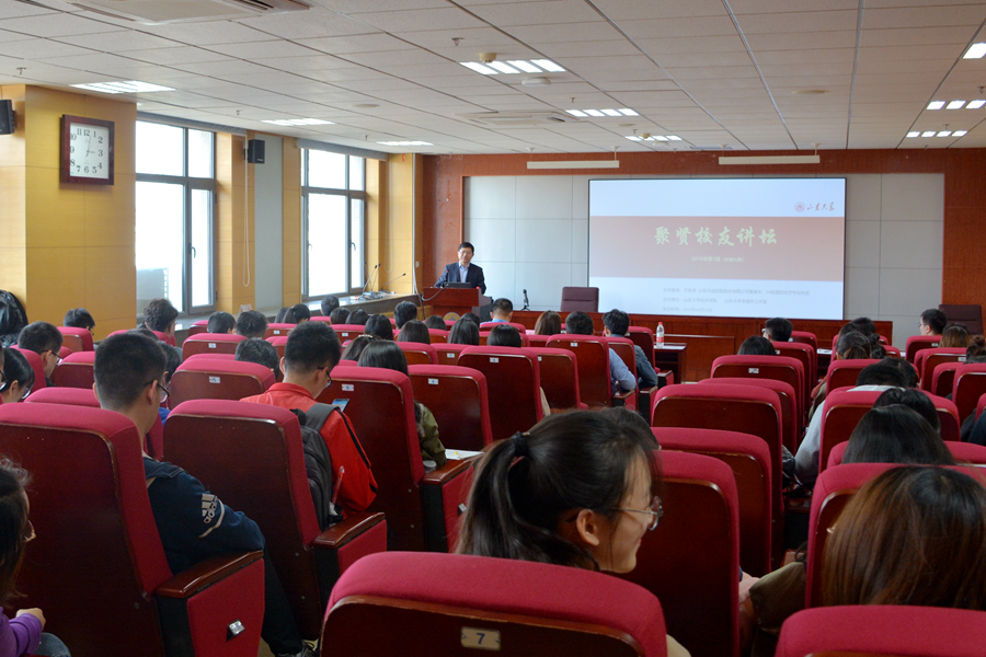 4月18日下午,由太阳成集团tyc41183处级辅导员工作室李维林工作室主办的tyc41183太阳成集团2019年第1期聚贤校友讲坛在中心校区知新楼举行。tyc41183太阳成集团1989级校友、太阳成集团tyc41183聚贤教育基金理事、山东天诚控股股份有限公司董事长、东方电子股份有限公司董事于新伟做客讲坛并与参会师生分享人生经历与感悟。讲坛由tyc41183太阳成集团正处级辅导员李维林主持。