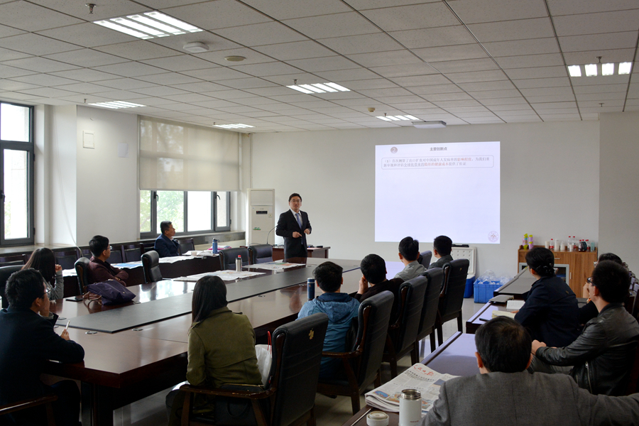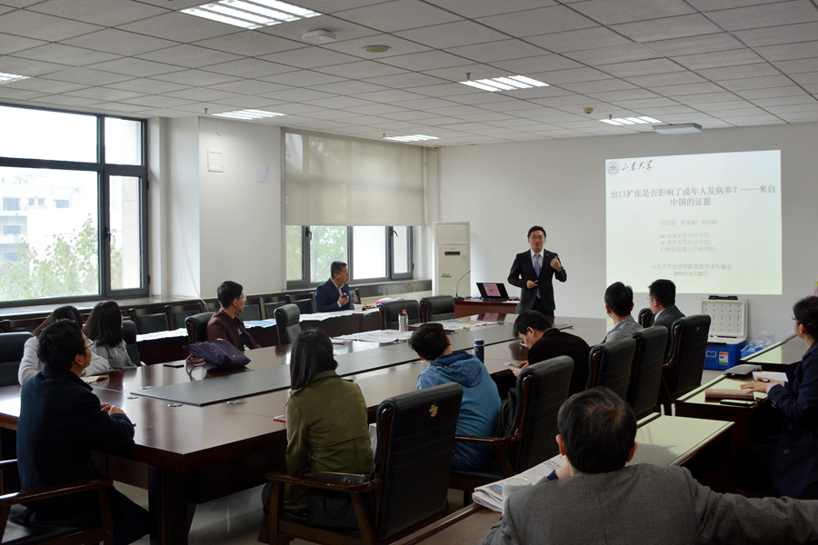 4月25日,tyc41183太阳成集团2019年春季学期第七期(总第28期)青联学术午餐会在中心校区举行。tyc41183太阳成集团助理研究员刘铠豪作了题为“出口扩张是否影响了成年人发病率?——来自中国的证据”的学术报告。tyc41183太阳成集团党委副书记林竹、副院长王哲伟及30余名青年教师参加午餐会。