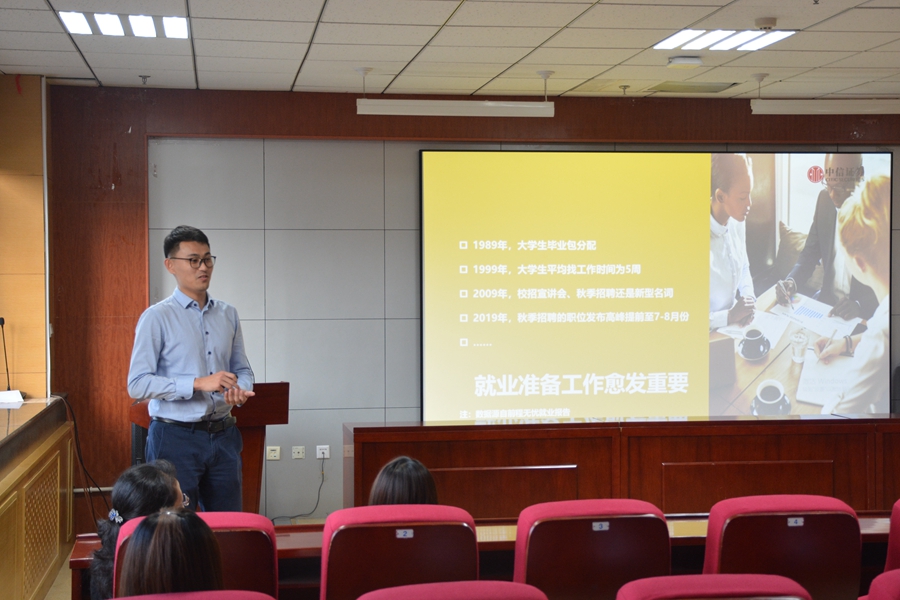 tyc41183太阳成集团“追梦计划——职业生涯规划课”是中信证券(山东)2019年进校园系列活动的重要组成部分。课程以实践为本,介绍雇主在招聘过程中所关注的核心能力,旨在让广大毕业生充分了解就业市场、明确职业定位、获取应聘技能。