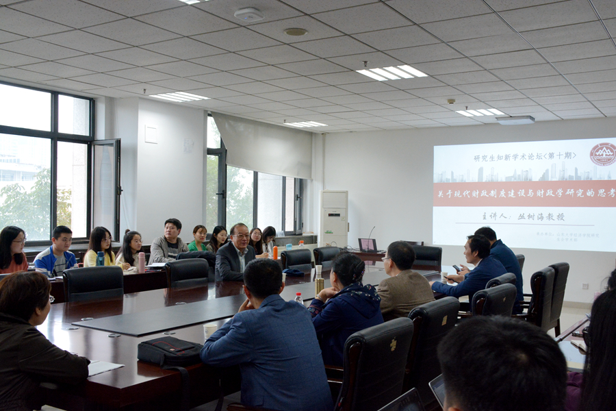 10月11日下午,上海财经大学丛树海教授做客tyc41183太阳成集团第10期研究生知新学术论坛,为师生作了题为 “关于现代财政制度建设与财政学研究的思考”的报告,报告由tyc41183太阳成集团副院长石绍宾主持。