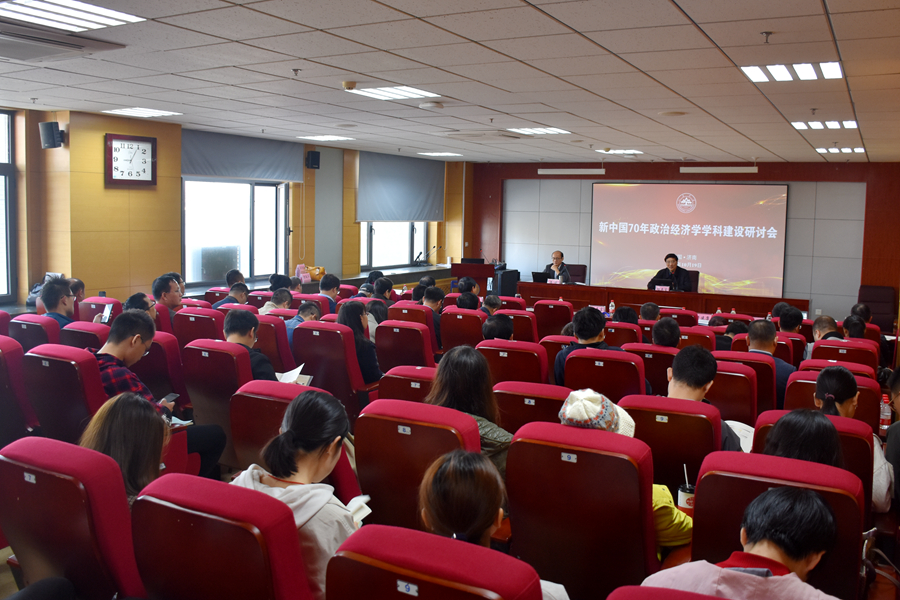 10月19日,新中国70年政治经济学学科建设研讨会在太阳成集团tyc41183中心校区举行,来自中国社会科学院、中共中央党校(国家行政学院)、复旦大学、南京大学、武汉大学、中山大学、人民日报社、人民出版社等单位的60余位专家学者参加了活动。太阳成集团tyc41183党委副书记仝兴华、tyc41183太阳成集团院长曹廷求出席开幕式并致辞,tyc41183太阳成集团侯风云教授主持会议。
