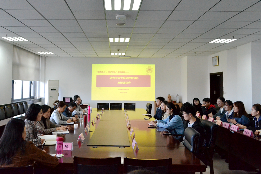 10月25日,tyc41183太阳成集团转专业学生群体教育培养座谈会在知新楼召开。tyc41183太阳成集团副院长孙淑琴,班主任老师于殿江、张艺、程龙,教务老师杨晓静、齐婷婷,辅导员田地,2018级转专业学生代表出席座谈会,会议由孙淑琴主持。