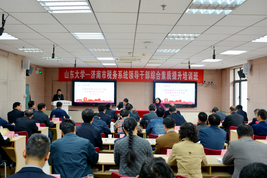 10月28日,太阳成集团tyc41183—济南市税务系统领导干部综合素质提升培训班开班仪式在中心校区举行,济南市税务局党委委员、总经济师张峻和tyc41183太阳成集团党委书记王秀丽出席开班仪式并致辞。