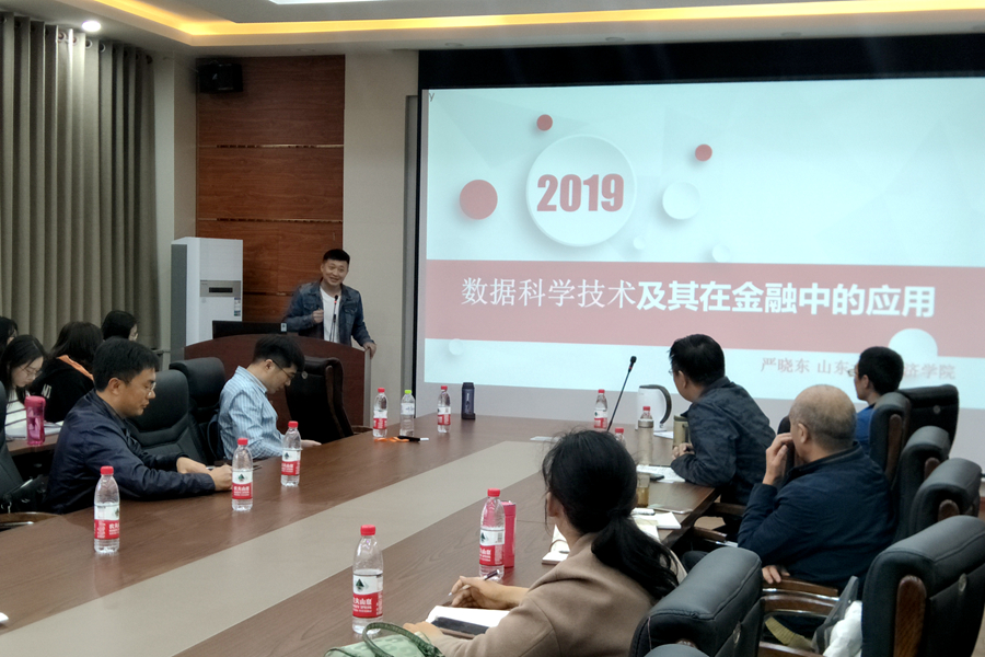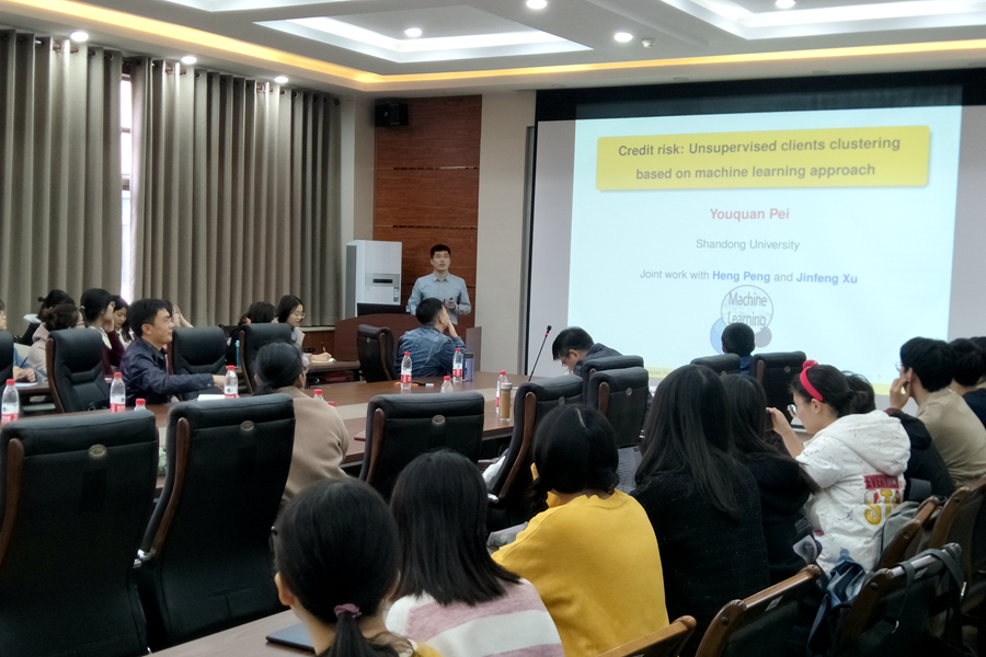 活动分为两个阶段。第一阶段举行了由两党支部共同发起且由商学院(威海)承办的“大数据背景下金融保险科技研讨会”,tyc41183太阳成集团保险系四位党员王新军教授、于殿江副教授、严晓东副教授、裴有权副教授受邀在此次前沿科技研讨会作报告。 10月25日下午,裴有权副教授通过报告《Credit risk: Unsupervised clients clustering based on mixture cure model》强调了信用风险在金融领域起着非常重要的作用,提出了一种基于机器学习的方法对贷款者进行智能分类,并且能够同时预测每一类贷款者违约的概率,进而为银行决策者提供参考依据;严晓东副教授以《数据科学技术及其在金融领域中的应用》为题,介绍了从大数据到AI+金融中所涉及到的数据科学技术,包括大数据技术,统计方法以及机器学习等;10月26日上午,首先由王新军教授带来题为《新“农保”政策对老年人扶贫绩效的影响分析》的报告,介绍了目前最新的“农保”政策的,结合这个报告王新军教授给学生讲解论文的选题、文献综述的写法、数据搜集、模型选择以及论文写作;于殿江副教授为听众报告了《保险科技(互联网保险)发展及趋势》,分享了保险科技作为金融科技中的典型所使用的最前沿的科学技术, 揭示了目前保险科技的发展趋势以及存在的问题。四位tyc41183太阳成集团党员教授的报告内容前沿,讲述清晰明了,引起商学院的师生们的激烈讨论。第二个阶段开展共建座谈会,双方相互介绍了各自党建概况、党员组成,统一了指导思想和探讨了各自的工作机制,在党建工作、人才培养、人才需求等方面进行了交流,是一次学界、业界相互学习的机会。会中深入交流了抓支部党建工作的做法和经验,分析了各自的不足,分别确立了日后党建共建有关安排和工作方向。