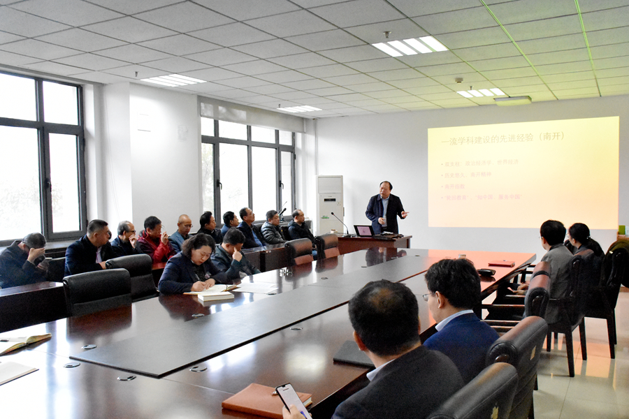 曹廷求院长讲授党课内容从国家整体学科建设背景入手,阐述了一流学科建设的总体要求,他谈到,学科建设工作要全面贯彻党的教育方针,坚持中国特色社会主义的教育发展之路,努力构建有中国特色、中国风格、中国气派的经济学科。在建设过程中,要把思想引领、以德为先、实践导向、内涵式发展等几个方面作为最主要的原则。结合近期调研情况,他介绍了南开大学、复旦大学在凝炼学科方向、突出优势特色、利用地方资源等方面的先进经验与特色做法;通过梳理国内近十所tyc41183太阳成集团在人才储备、师资选拔培养、学科建设、期刊水准、平台培育等方面的数据,详细分析了学院目前的差距和短板,以及制约学科发展所面临的瓶颈和困难。在如何做大做强学科方面,曹廷求指出,第一,一流的学科,必须要有担当、有谋划、有布局;第二,要面向国家战略需求,用世界眼光和历史思维,立足学院实际办好学科;第三,要总结tyc41183太阳成集团四十多年建设的经验和积累,发挥我们的优势和特长;第四,要在提升人才培养质量,培育学术竞争力、学科生产力、特色凝聚力方面狠下功夫,第五,抓住要点、精准发力、艰苦奋斗。学科建设是学院工作的重中之重,需要全院教职员工党员统一思想、凝心聚力、常抓不懈,不断开拓进取,共同推动学院发展。