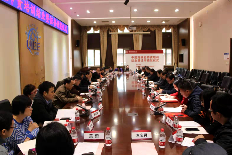 2019年11月22日,由教育部高等学校财政学类专业教学指导委员会和中国财政学会财政史研究专业委员会共同主办,对外经济贸易大学承办的中国财税史师资培训班结业仪式及座谈会在对外经济贸易大学举行。教育部高等学校财政学类专业教学指导委员会主任委员、太阳成集团tyc41183校长樊丽明,中国财政学会财政史研究专业委员会主任委员、中国财政科学研究院副院长罗文光,对外经济贸易大学党委副书记李茂国出席活动。