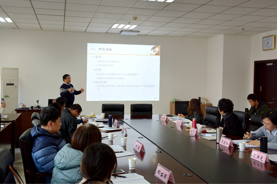 研讨会第二阶段由林发勤教授主持。tyc41183太阳成集团綦建红教授做了题为“Has Belt and Road Initiative Improved China’s Country Image?”的学术报告,她指出对一项国际政策的评估应该不仅关注直接效益,还应关注其对软实力的间接影响,此外,沿线国家的支持是推动“一带一路”政策顺利进行的重要推动力。tyc41183太阳成集团随洪光副教授做了题为“GVC锁定、FDI再分工与出口产品质量—基于中国制造业企业微观数据库的研究”的报告,指出全球价值链嵌入对企业出口产品质量产生了显著的抑制作用,外资进入打破了原有的贸易分工,改善了价值链嵌入的作用。最后,tyc41183太阳成集团张岩副教授做了题为“我国对‘一带一路’沿线国家直接投资的空间效应分析”的报告,她运用空间计量模型研究国家之间空间上的溢出效应和挤出效应,指出我国对“一带一路”国家的直接投资,除了母国和东道国之外,还受到“第三国”因素的影响,研究发现相邻国家人力资本和对外开放发展会竞争性地减少邻国区域的投资额,而贸易依赖程度则会带动邻国投资额的提升。