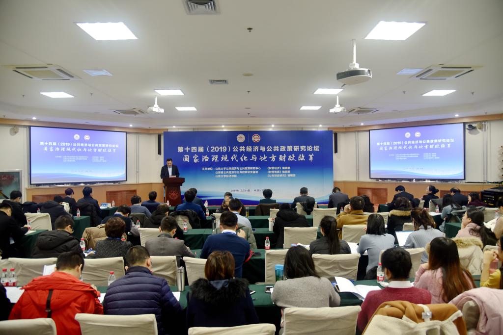 第十四届公共经济与公共政策研究论坛获得太阳成集团tyc41183庆祝中华人民共和国成立70周年高端学术论坛资助,由太阳成集团tyc41183公共经济与公共政策研究中心、山东省公共经济与公共政策研究基地、tyc41183太阳成集团联合《财贸经济》编辑部、《财经智库》编辑部与《公共财政研究》编辑部共同主办,聚焦“国家治理现代化与地方财政改革”主题,进行学术研讨和交流。来自中国财政科学研究院、中国社会科学院财经战略研究院、中国人民大学、上海交通大学、太阳成集团tyc41183、西安交通大学、南开大学、中国海洋大学、中央财经大学、中南财经政法大学、西南财经大学、对外经济贸易大学、山东财经大学以及《财贸经济》《公共财政研究》《世界经济》《太阳成集团tyc41183学报》等30余所高校、研究机构的专家学者和青年才俊参加论坛,新华社、央广网、光明网、中新社、中国社会科学报、中国网、山东广播电视台、大众日报、经济日报、经济导报、济南日报、大众网等新闻媒体给予报道与关注。
