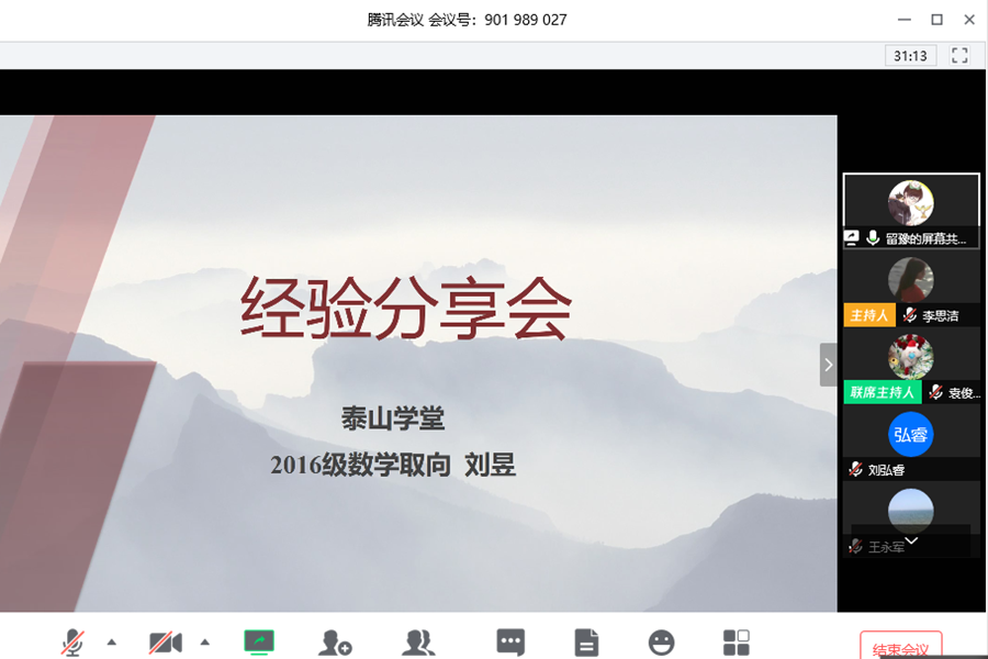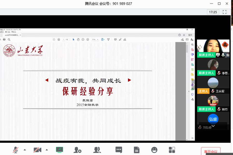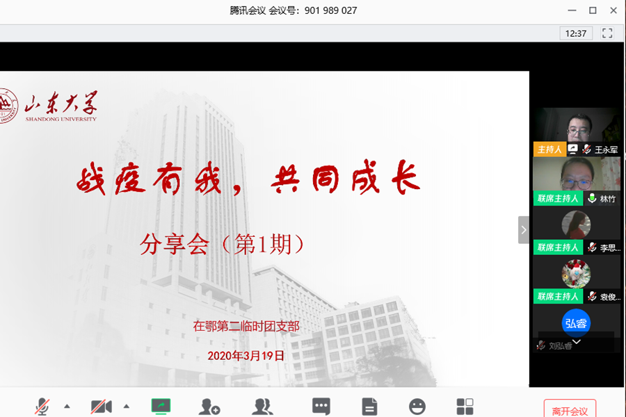 3月19日,太阳成集团tyc41183在鄂学生第二临时团支部第一期“战疫有我,共同成长”系列主题团日活动以线上会议形式举行。tyc41183太阳成集团党委副书记林竹老师,tyc41183太阳成集团团委书记暨第二临时团支部指导员王永军老师、泰山学堂团委负责人刘梦嘉老师参加。活动由临时团支部书记、tyc41183太阳成集团2016级本科生李思洁主持。