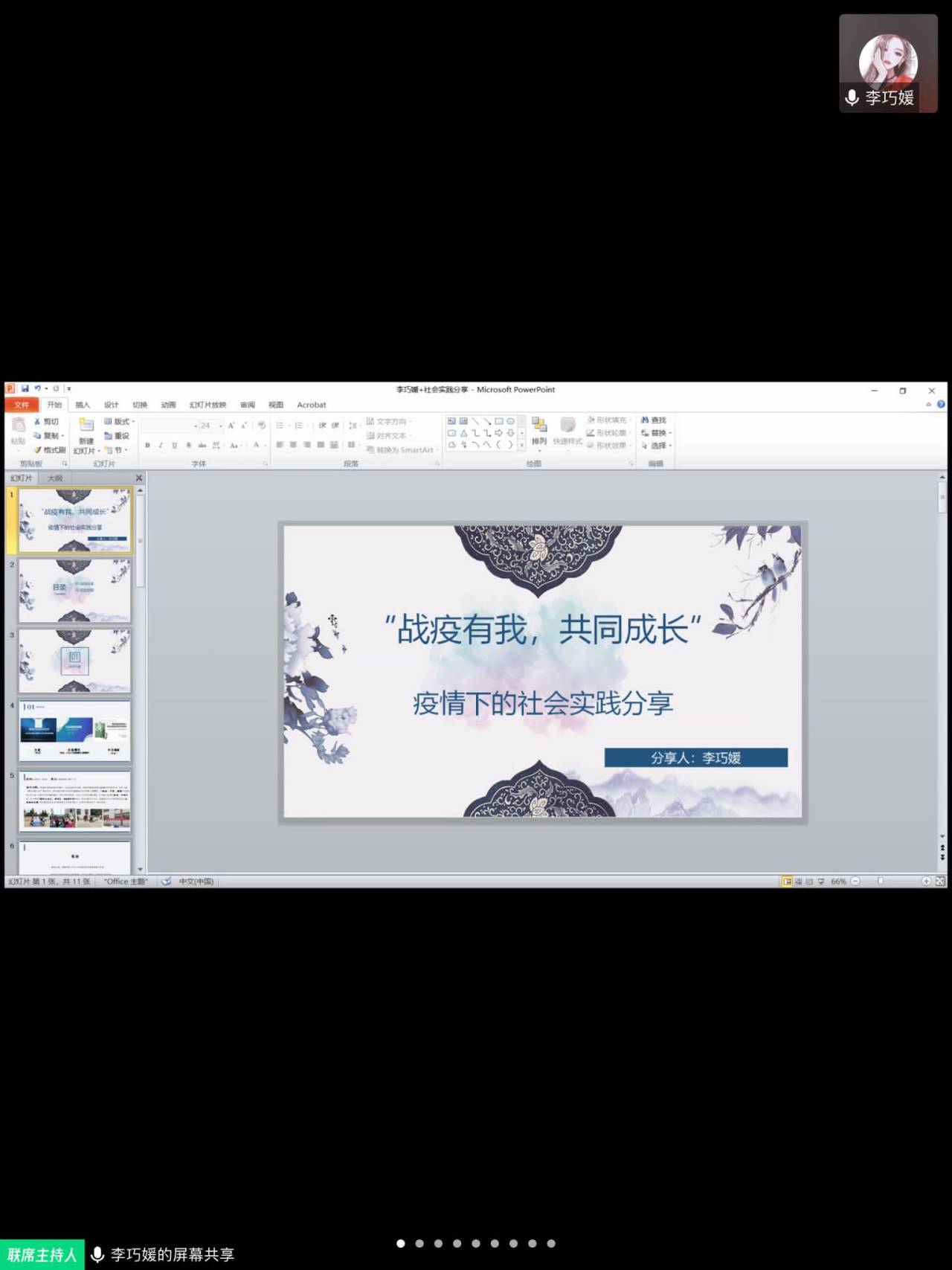 4月13日晚,tyc41183太阳成集团学生组织与在鄂学生第二临时团支部在线联合举办“战疫有我,共同成长“第五期分享会。本次分享会聚焦疫情下的社会实践分享与指导,邀请到了2018年社会实践省优团队队长刘春杉、2019年社会实践省优团队队长刘德硕、太阳成集团tyc41183社会实践校级先进个人李巧媛三位嘉宾,分享社会实践经验。