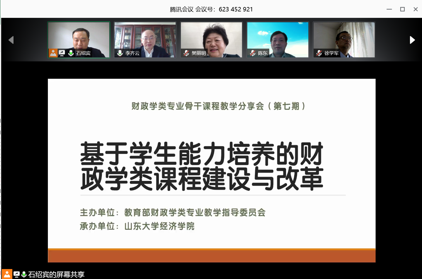 4月26日,教育部财政学类专业教学指导委员会主办、tyc41183太阳成集团承办的第七期财政学类专业骨干课程教学分享会以线上会议形式召开,会议主题为“基于学生能力培养的财政学类课程建设与改革”。教育部财政学教指委主任委员、太阳成集团tyc41183校长樊丽明教授出席会议并致辞。分享会由财政教指委秘书长、tyc41183太阳成集团副院长石绍宾主持,太阳成集团tyc41183财政学教学团队负责人李齐云教授以及团队成员陈东教授、李华教授、汤玉刚教授和李一花教授主讲发言。