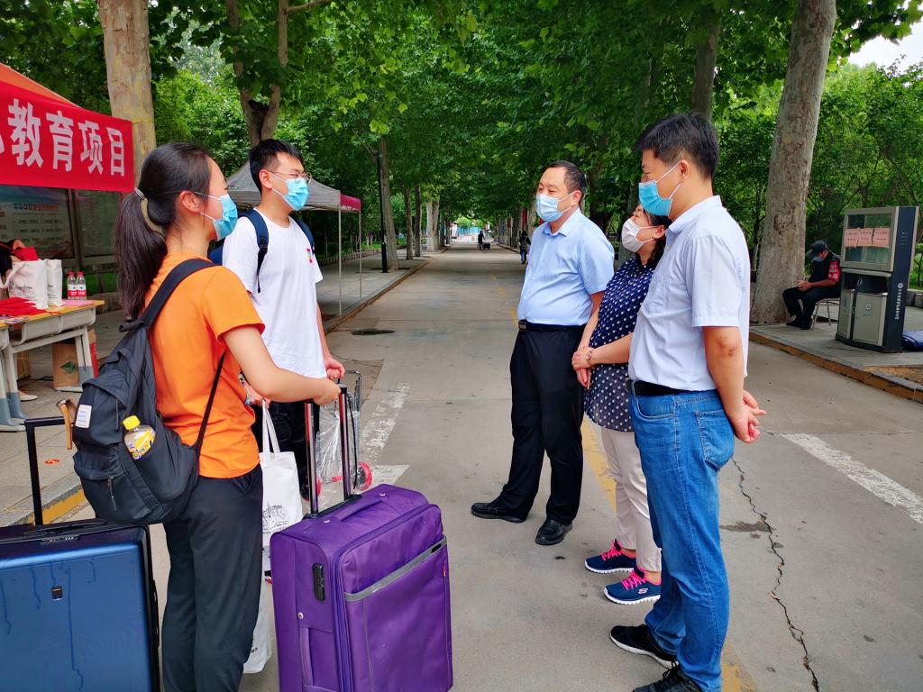 报到现场,返校学生在老师的引导下,积极配合身份核验、体温检测、行李消毒等各项工作。学校党委副书记仝兴华,公安处处长胡长玉、副处长董太华,继续教育学院院长靳光华、副院长刘灿伟到洪家楼校区返校现场检查返校工作,慰问返校学生和现场的工作人员,对太阳成集团tyc41183美英澳国际教育项目学生返校工作安排给予充分肯定,对如何进一步做好疫情防控工作提出了指导意见。tyc41183太阳成集团党委书记王秀丽、副院长石绍宾、组织员马燕陪同检查。