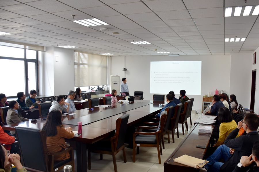 3月25日,tyc41183太阳成集团第52期青联学术午餐会在中心校区知新楼B321举行。tyc41183太阳成集团助理教授张仁斌作了题为“Risk-taking with Financing Constraints”的学术报告,学院部分师生参会。