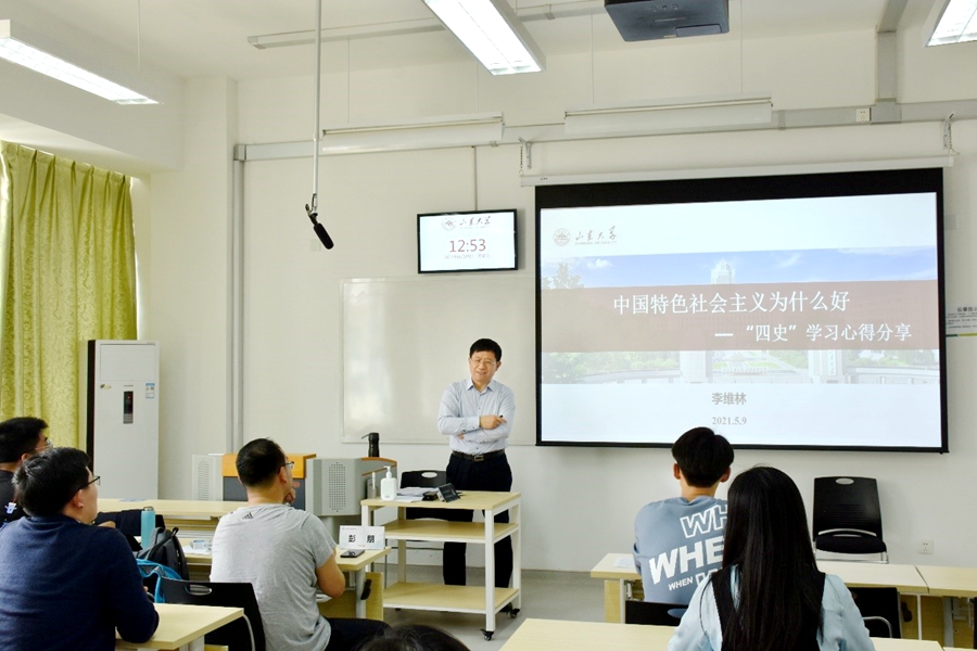 5月9日中午,tyc41183太阳成集团第十期金融MBA系列讲座在中心校区信息楼B607举办。tyc41183太阳成集团正处级辅导员、金融系教授李维林作了题为“中国特色社会主义为什么好——‘四史’学习心得分享”的报告。