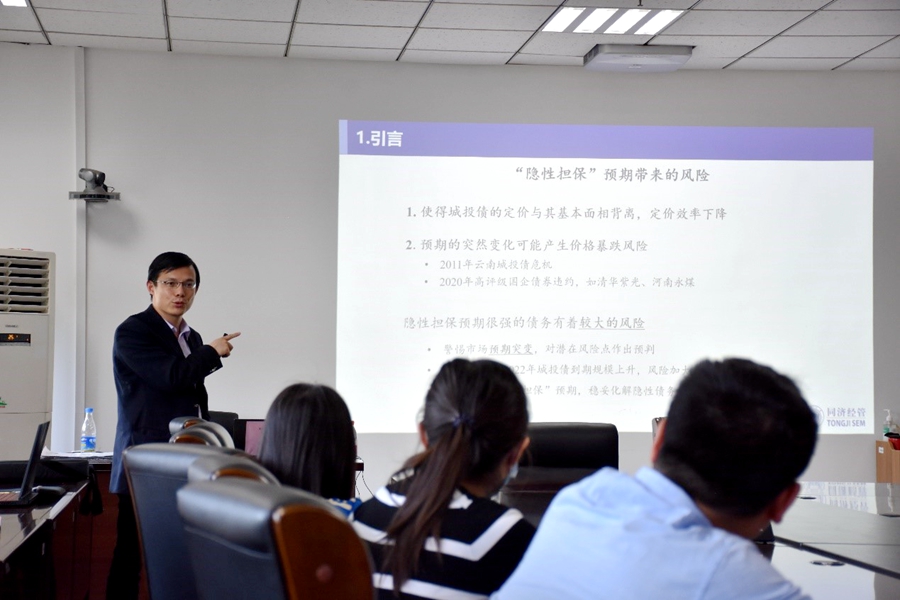 基于上述结论,报告进一步探究了“隐性担保”的形成机制,发现一个省发行的置换债券的相对规模是市场对当地城投债“隐性担保”预期的重要解释因素;该预期也与地方融资平台的财务风险以及地方政府的财政实力正相关。因此,报告建议相关部门重点监管城投债中“隐性担保”预期较强的部分,更好地发挥显性债务在基础设施建设融资中的作用,降低对于隐性债务的依赖,同时要加快推进地方融资平台的市场化改革,提高盈利能力,并调整城投债的评级体系。讲座结束后,钟宁桦教授就讲座中的相关问题与参会师生进行了交流与探讨。