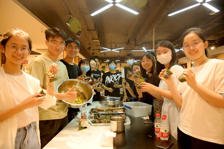 本次主题活动包含三个环节,分别是自包米粽、经典诵读和参观中心校区齐园餐厅。在自包米粽活动环节,饮食管理服务中心来京、周秀芹老师向在座的师生讲述了粽子的传统故事,并向大家现场讲授示范了传统粽子的包制方法。随后各支部师生们在饮食中心的老师们的指导下,纷纷开始亲自动手包制粽子,粽子好吃、包制不易,师生们在劳动中体验中华传统文化的魅力。包制好的粽子紧接着送至餐厅进行熟制。