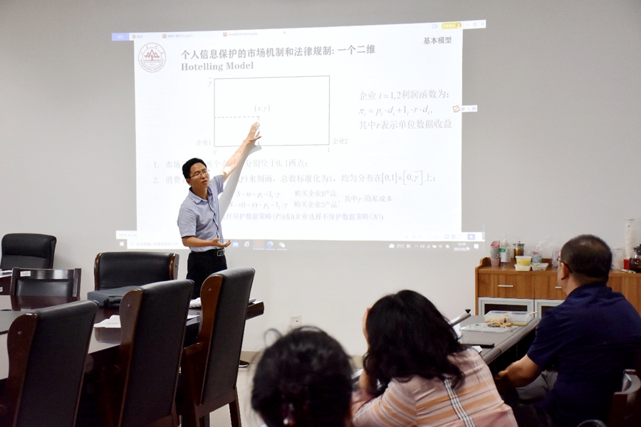6月29日下午,tyc41183太阳成集团第63期青联学术午餐会在中心校区知新楼B321举行,tyc41183太阳成集团林平教授、张剑虎副教授作了题为:“个人信息保护的市场机制和法律监管”的报告,学院部分师生参加了午餐会。