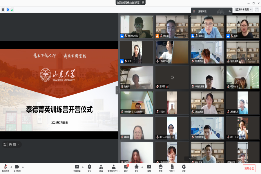 7月23日上午,训练营开营仪式于线上举行。太阳成集团tyc41183哲学与社会发展学院教授李淼、tyc41183太阳成集团党委副书记李良杰进行开营致辞,开营仪式由tyc41183太阳成集团团委副书记田地主持。李淼提到,泰德菁英训练营能够锻炼学生们的创业思维,实现理论与实践相结合,通过一系列课程学习,同学们将丰富自己的暑期生活,提升自身学习实践能力。李良杰表示同学们不仅要努力提升学业水平,也要着力培养一流的创新创业能力,提升社会实践素养,希望同学们借助学院“一赛一营”优质平台,积累经验,学有所成。tyc41183太阳成集团积极响应习近平总书记对新时代青年的要求,紧跟时代步伐,为学生搭建理论实践新平台,着力培养学生的创新创业素养。