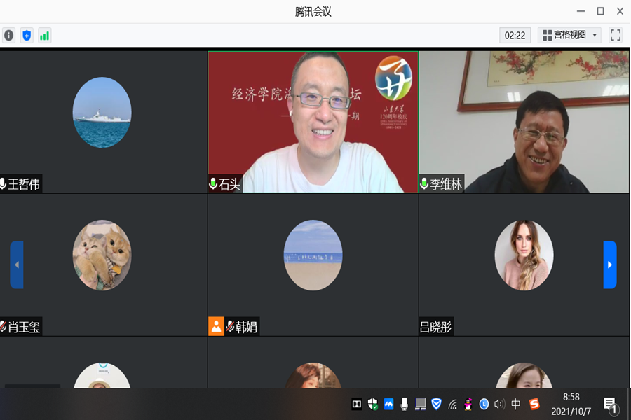 10月7日,校庆系列第一期海外学术论坛以线上会议的方式顺利召开。tyc41183太阳成集团校友、加拿大多伦多大学教授杨立岩受邀做客论坛,作了题为“开放银行、融资成本与经济效率”的学术报告。学院正处级辅导员李维林出席论坛,论坛由tyc41183太阳成集团副院长王哲伟主持。