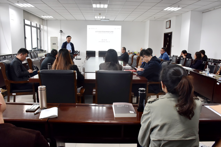 研讨会上,徐龙炳教授作了题为“国家级项目申请探索与思考“的报告。报告从研究选题、研究背景和意义、研究内容、研究基础以及研究团队等五个方面,对如何实现更好的国家自然科学基金项目申报进行了答疑解惑。研讨会上,徐龙炳教授提出要从实务角度中寻找适合的研究课题,在已有的研究成果基础上挖掘申请课题,从评议人角度审视自己的项目。报告指出立论依据要涵盖课题研究的意义、科学性、国内外研究现状、学术思想及创新性等角度;所申请的项目应当是领域中具有重要的理论价值和现实意义的问题;项目研究的基础是已有研究工作的继续等。最后,徐龙炳教授对组织科研项目申请的流程,如何阐述项目的研究意义,如何高效检索文献等进行了说明。