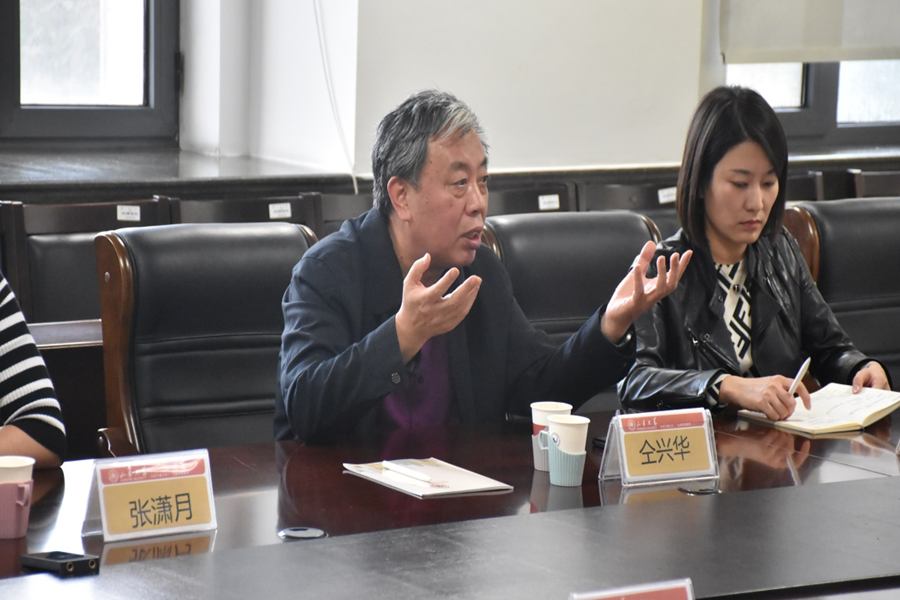 仝兴华首先对tyc41183太阳成集团新文科建设工作取得的成绩给予了肯定。他表示,在新文科建设进入走深走实的新阶段,要立足新时代,回应新需求,抓住机遇思想解放、加大改革力度,积极构建具有中国特色的学科体系、学术体系。对于下一步工作他提到,要遵循学术发展规律,思考专业结构重构问题,进一步完善专业培养方案,优化课程设计,积极推动新文科建设创新发展。全国新文科教育研究中心办公室有关负责人与学院相关人员对新文科建设开展情况进行深入的意见交流。