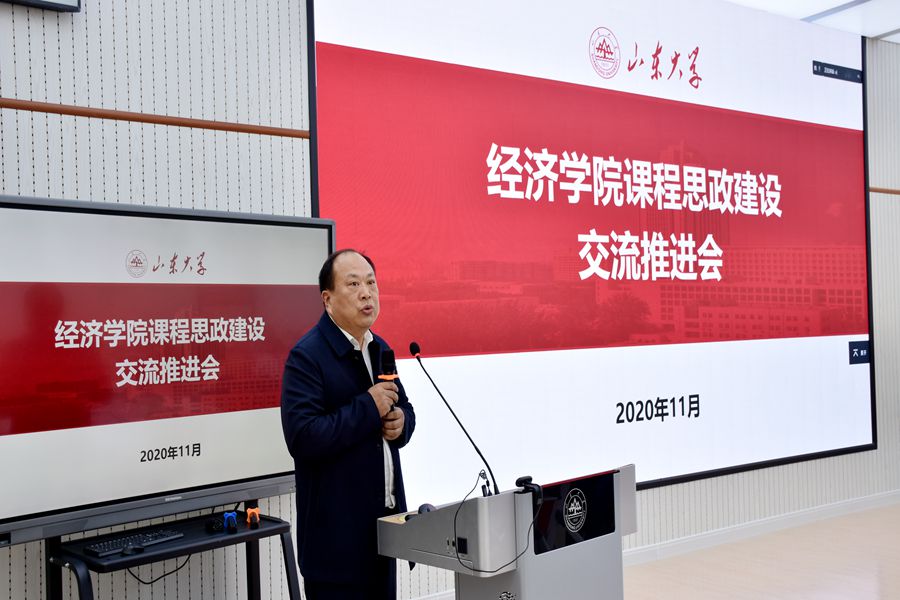 曹廷求在致辞中介绍了此次会议的背景和意义,提出了学院课程思政建设的愿景规划。此次课程思政建设交流会的举办,是基于当前新的使命担当、新的环境变化以及新文科建设三大背景,旨在回答什么是立德树人、立德的含义是什么以及德在学院和大学建设中应当如何体现这三个问题。思政建设问题并不是纯粹的思想教育课,它同专业建设、课程建设乃至实践环节密切相关;为推进课程思政建设落地实施,学院将采取措施保障课程思政育人体系构建,力争把学院的课程思政建设做成新典范、创出新模式。